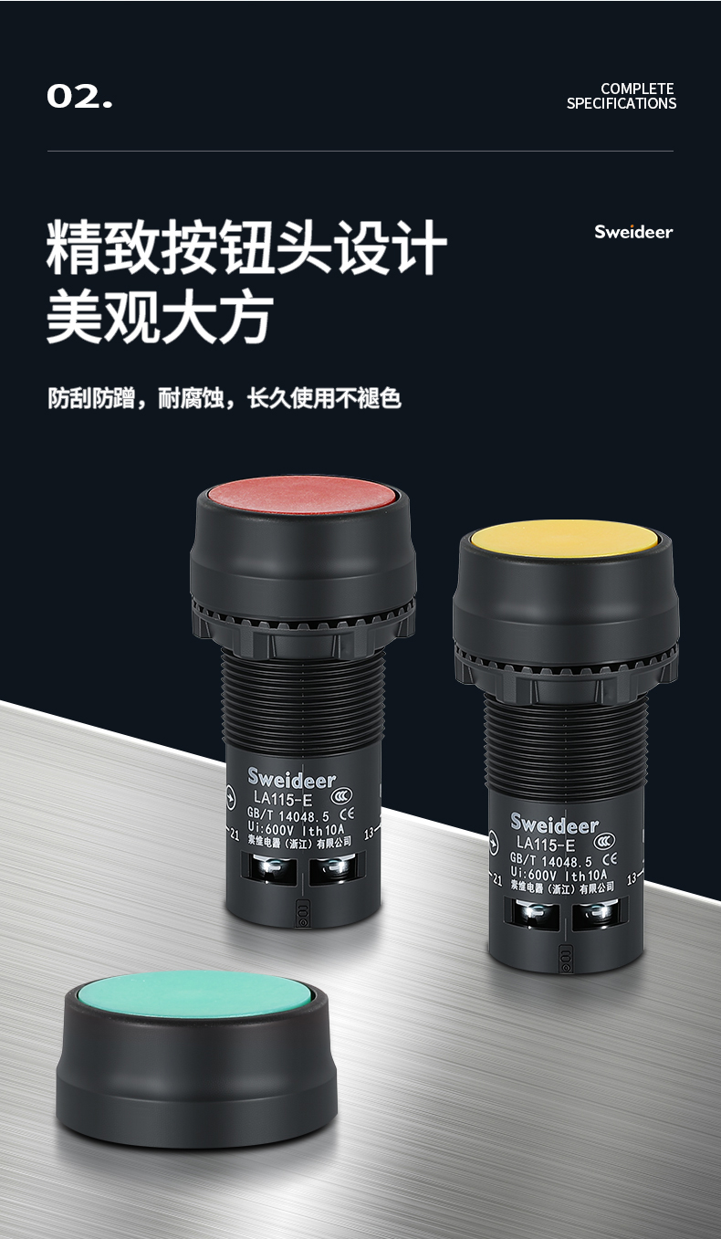LA155-E3系列Sweideer一体式开孔22MM急停按钮开关带自锁蘑菇头自复位点动按钮