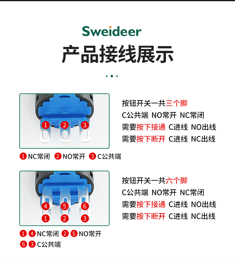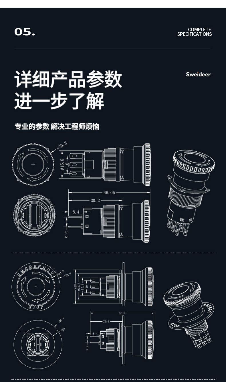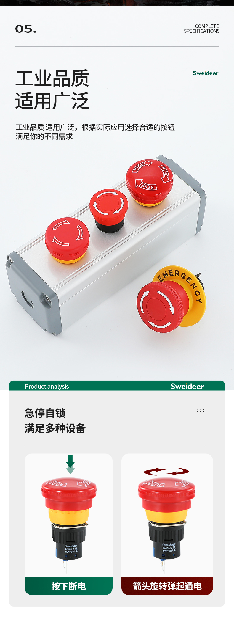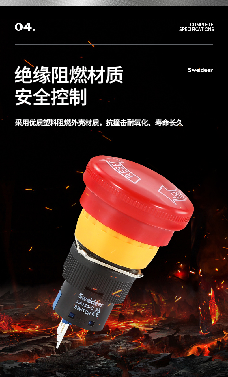 LA155-E3系列Sweideer一体式开孔22MM急停按钮开关带自锁蘑菇头自复位点动按钮