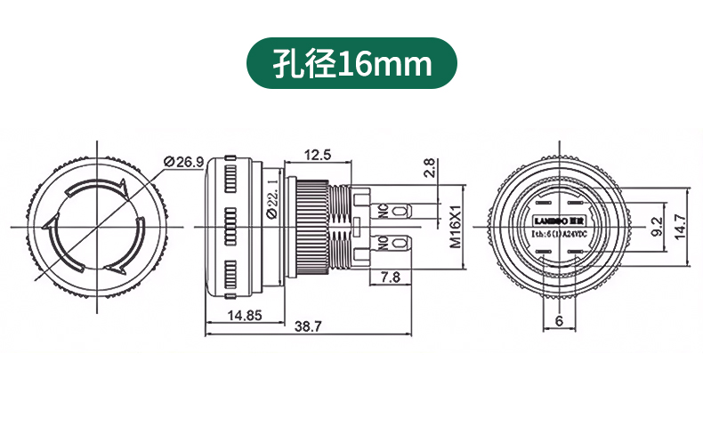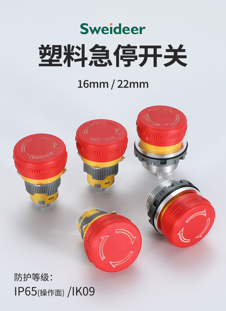 LA155-E3系列Sweideer一体式开孔22MM急停按钮开关带自锁蘑菇头自复位点动按钮