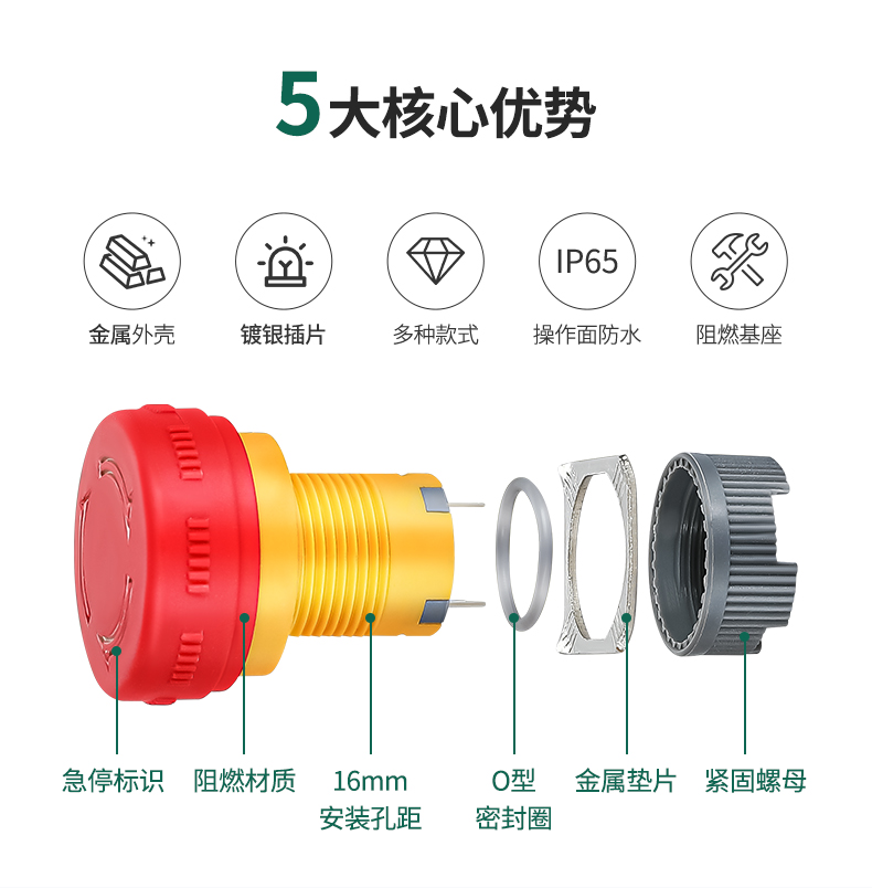 索维 16/22mm金属急停按钮蘑菇头紧急停止开关自锁停止超短电源