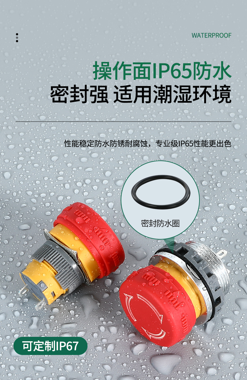 LA155-E3系列索维一体式平头按钮开关自复点动式急停按钮开关旋钮开关二档三档