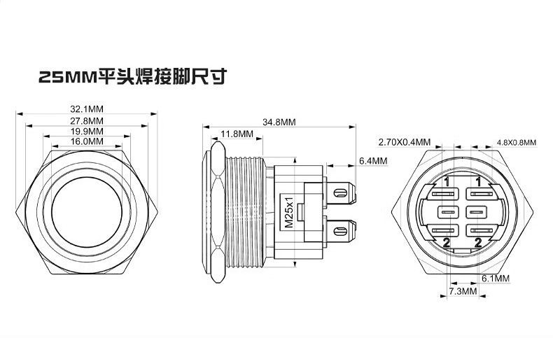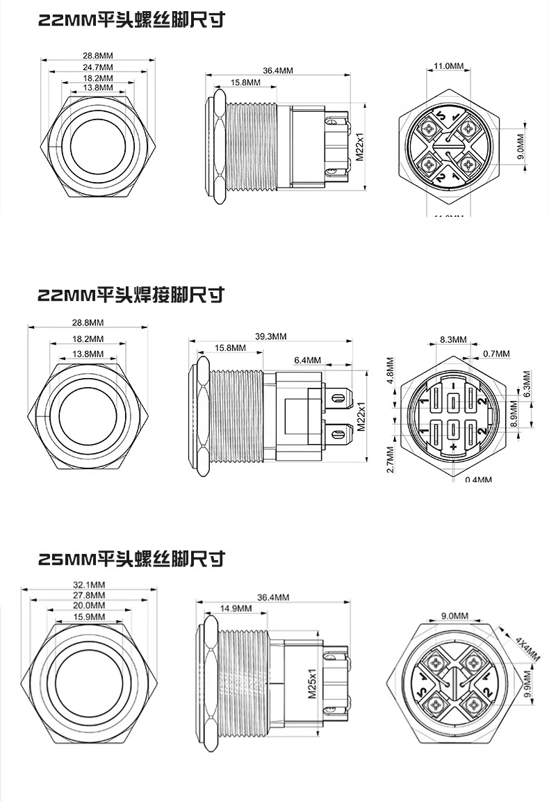 LA155-E3系列索维一体式平头按钮开关自复点动式急停按钮开关旋钮开关二档三档