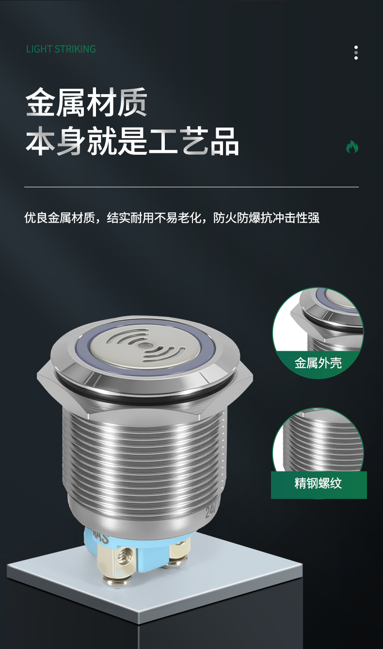 Sweideer 16/19/22mm金属防水蜂鸣器螺丝脚间断闪亮声光报警器12V
